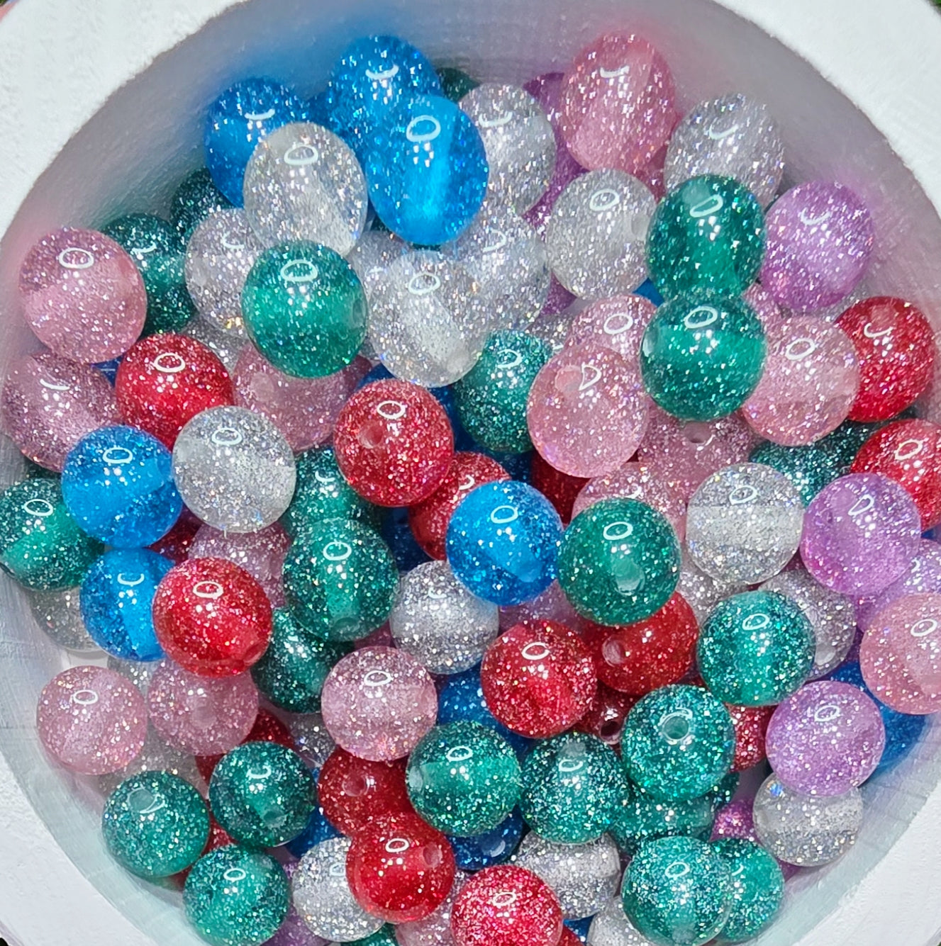 12mm acrylic beads, glitter beads, Randomly mixed, 8pcs pack