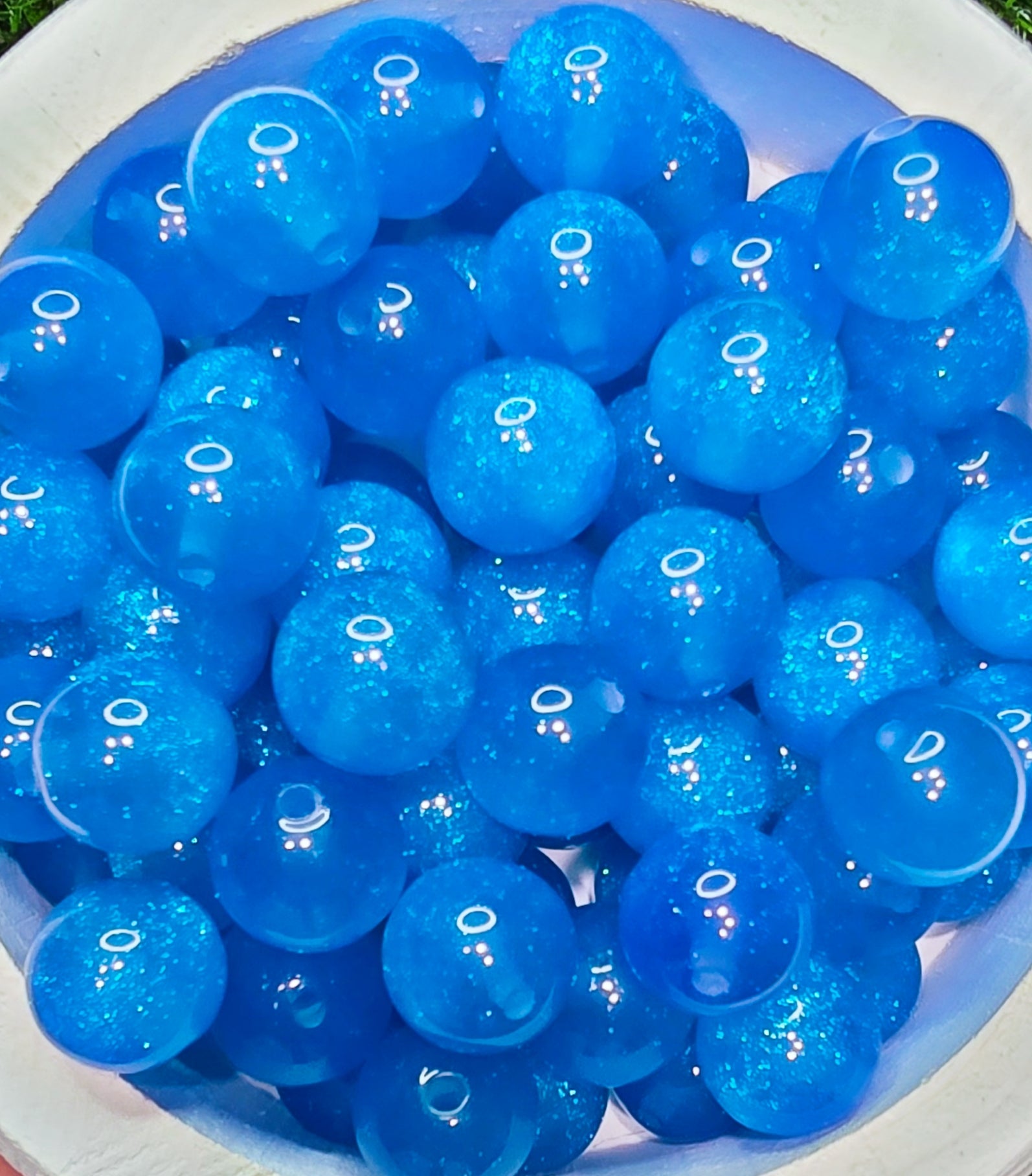 Blue 16mm glow in the dark glitter acrylic beads