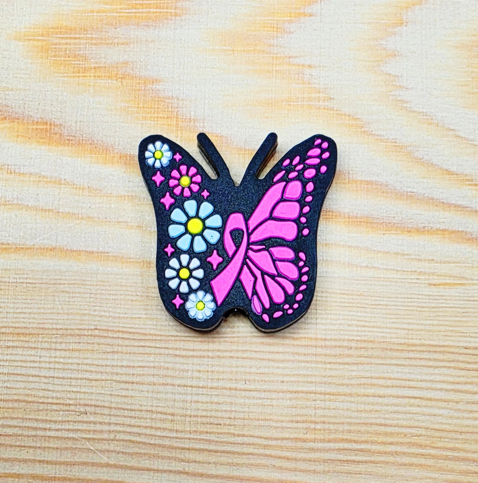 Butterfly pink ribbon awareness silicone focal bead - A168