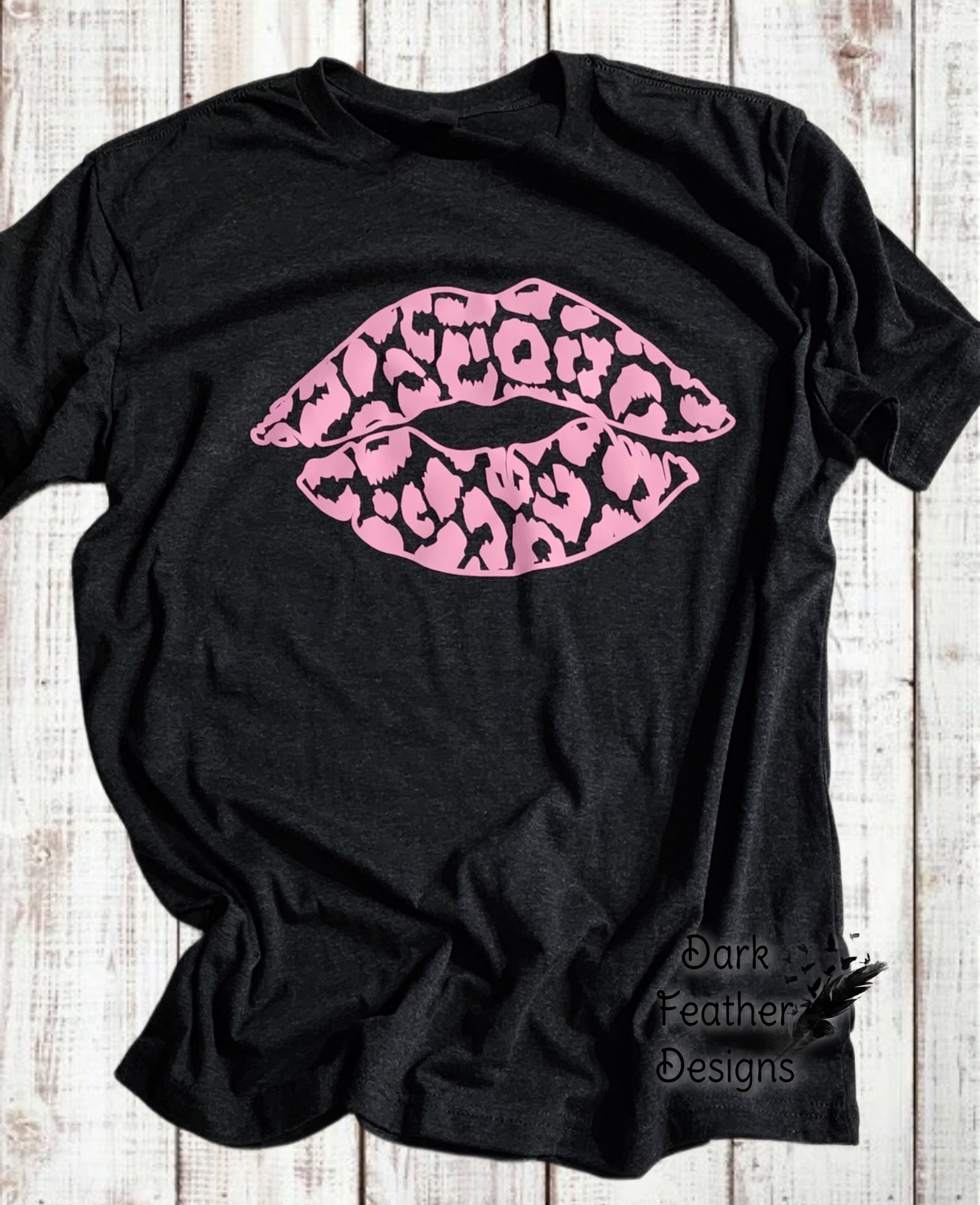 Pink Leopard print lips dark gray tshirt